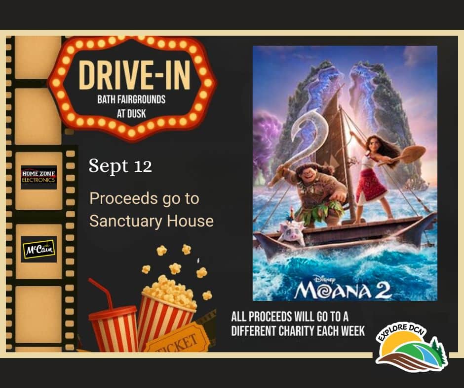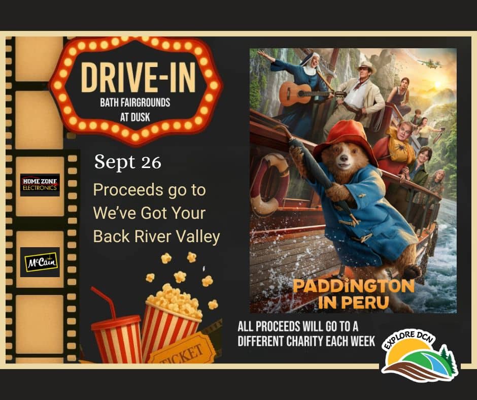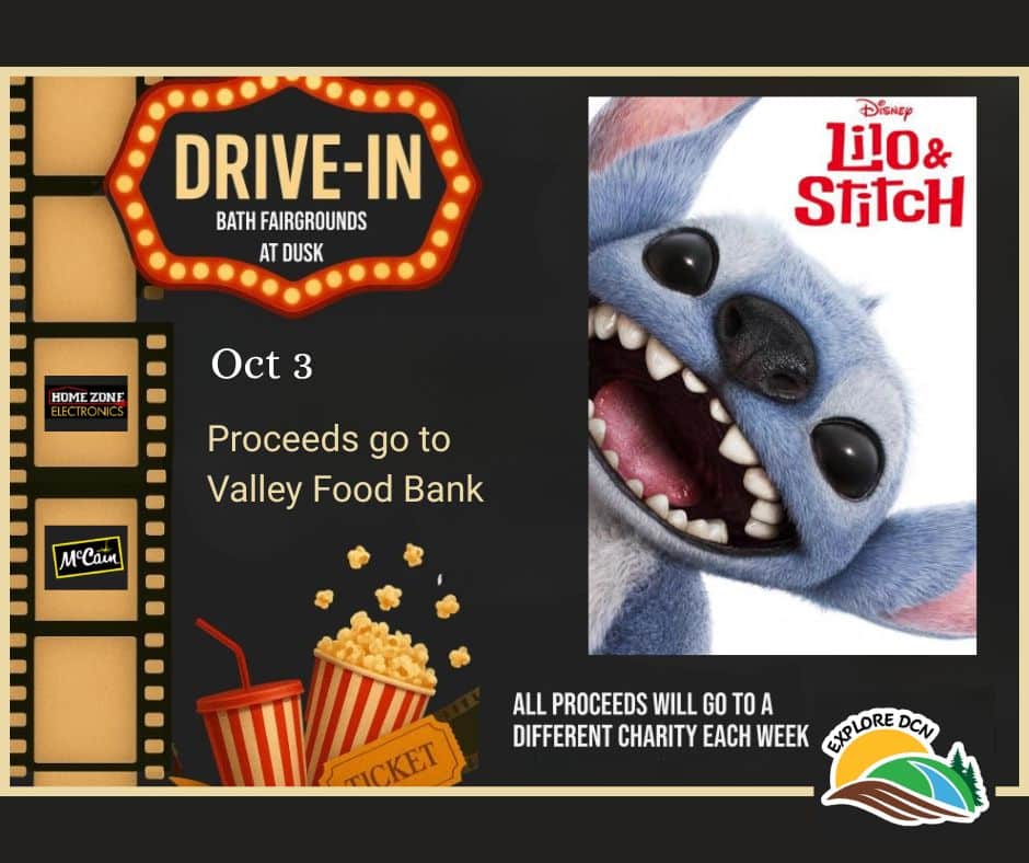 Get ready for Drive-In movie nights beginning September 12th at the Bath Fair Grounds! Starting at dusk, enjoy four Friday evenings of family-friendly entertainment under the stars. Pack your snacks and join us for a classic big screen experience right here in our community.