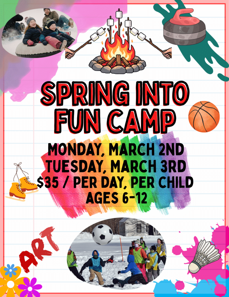 Looking for something fun to do on March Break? “Spring Into Fun Camp” is a 2-Day Camp: activities will include curling, rock climbing, ice skating, and various games.